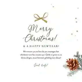 - 🎶 Zet een klassieke tekst op je kerstkaart, zoals 'Prettige feestdagen', een bekend kerstgedicht of de tekst van een nostalgisch kerstliedje.