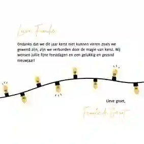 - Voeg een romantische foto toe: jullie samen bij de kerstboom, een hartje in de sneeuw of een vrolijke familiekiek.