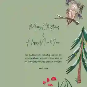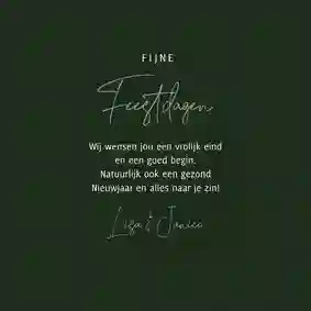 Met een kerstkaart vol natuur stuur je een beetje winterse rust met de post mee. Groen, warm en sereen: alsof je even door een besneeuwd bos wandelt. Perfect voor wie houdt van eenvoud en natuurlijke schoonheid.