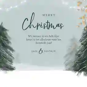 Met een kerstkaart vol natuur stuur je een beetje winterse rust met de post mee. Groen, warm en sereen: alsof je even door een besneeuwd bos wandelt. Perfect voor wie houdt van eenvoud en natuurlijke schoonheid.
