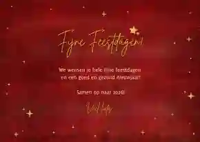 Wil je een luxe kerstkaart versturen? Combineer rood dan met goud. Deze tijdloze kleurencombinatie geeft je ontwerp een extra vleugje glamour. Denk bijvoorbeeld aan rode kerstkaarten met gouden sterren, elegante typografie en fonkelende foliedruk.