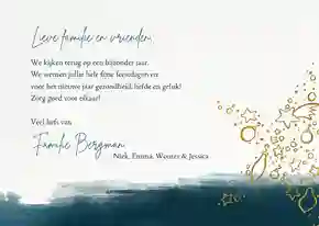 Ben je een echte creatieveling en dol op schilderen? Dan kun je natuurlijk ook zelf je eigen kerstkaart met aquarel schilderen. Gebruik een van onze aquarel kerstkaarten als voorbeeld en laat je creativiteit stromen. Vind je het iets te veel werk om voor elke dierbare een eigen aquarel kerstkaart te schilderen? Maak dan één kunstwerkje, scan ‘m in en upload hem vervolgens bij onze fotokaarten. Daarna kies je zelf de vorm van je kerstkaart en kun je hem in de kaartmaker helemaal naar wens aanpassen. Bepaal tot slot hoeveel aquarel kerstkaarten je wilt bestellen, en wij doen ze voor je op de bus. Zo heb je je eigen unieke kerstkaart met aquarel gemaakt!
