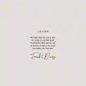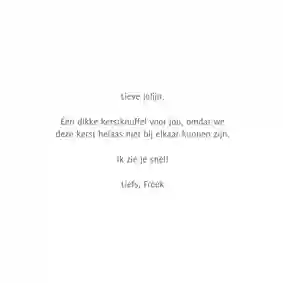 - Ga voor een warme tekst zoals ‘Een lichtpuntje voor jou’ of ‘Dikke kerstknuffel’.