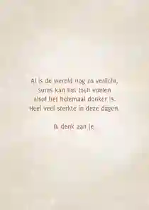 🤍 Bekijk ook onze denken aan kaarten, beterschapskaarten, sterkte kaarten en condoleancekaarten.