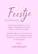 Net als volwassenen zijn ook kinderen maar één keer per jaar jarig. Toch vieren de meeste kinderen het niet één, maar twee keer: op hun verjaardag en tijdens hun kinderfeestje! Gaat ook jouw - niet meer zo kleine - spruit een feestje geven voor vriendjes en vriendinnetjes? Dan biedt dat dubbel de kans om met uitnodigingen rond te gaan. Maar wees niet bang; twee aparte uitnodigingen maken is niet nodig. Bij Kaartje2go kun je namelijk heel makkelijk ontwerpen kopiëren. De uitnodiging voor het verjaardagsfeest of het kinderfeestje is dus zo aangepast.