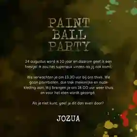 - Schrijf een feestelijke tekst op de kaart. Vergeet ook niet te vermelden dat je het beste oude kleding aan kan doen, want van survivallen kun je vies worden.