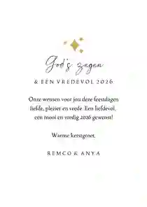 Kenmerken van een christelijke nieuwjaarskaart zijn de illustraties van witte duiven met een olijftak, engelen en licht (kaarsen, foliedrukdetails en sterren). Op sommige van deze nieuwjaarskaarten staan engelen en gouden sterren afgebeeld, andere kaarten hebben een kader voor een mooie foto. De sobere kleuren en handgeschreven lettertypes geven de christelijke nieuwjaarskaarten een zachte uitstraling en laten je warme woorden nog meer opvallen.