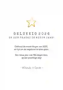 Een foto zegt meer dan duizend woorden, en staat ook nog eens heel fleurig op een nieuwjaarskaart. Kies je favoriete kiekje van 2025 of maak een fotocollage van alle mijlpalen. Onze designers hebben de mooiste foto nieuwjaarskaarten gemaakt. Zo kun je je foto in verschillende kaders, zoals een kerstbal, oliebol, kerstboom of krans plaatsen. Of kies een nieuwjaarskaart waarin jouw foto de achtergrond is, en wordt versierd met feestelijke elementen als champagneglazen, strikjes, vuurwerk of sterren.