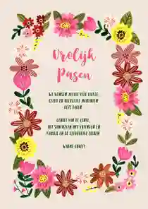 De lammetjes dartelen door de wei, het zonnetje schijnt en de chocolade eitjes worden alvast verstopt. Kortom; Pasen staat voor de deur! En met een vrolijk pasen kaart maak je het feestje compleet. Daarom hebben we een groot aanbod paaskaarten, bijvoorbeeld voor opa’s & oma’s, volwassenen en kinderen. Maar natuurlijk zijn er ook paaskaarten voor vrienden en kennissen die je een vrolijk Pasen wilt wensen. Kies bijvoorbeeld voor een paaskaart met lachende paashaas of bonte paaseieren. Kaartjes met kuikentjes, konijnen en kippen zijn ook erg populair.