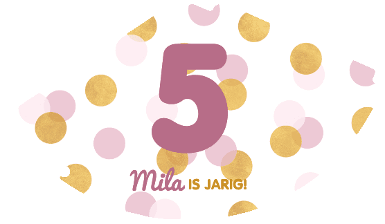 Gezellig feesthoedje met roze en gouden confetti, een leeftijd en naam!
