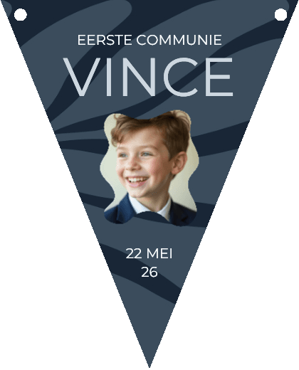Trendy slinger voor een communiefeest met blauwe abstracte takjes op de achtergrond.