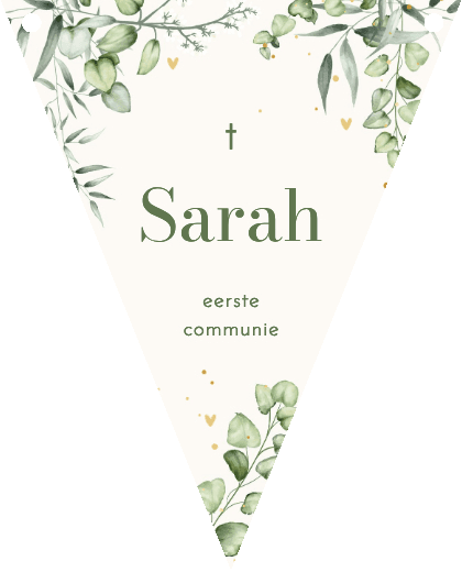Stijlvolle slinger voor een communiefeest. Met eucalyptus en gouden spettertjes.