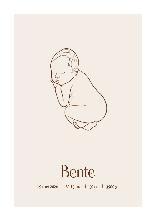 Simpele poster voor geboorte met lijntekening van een kindje.