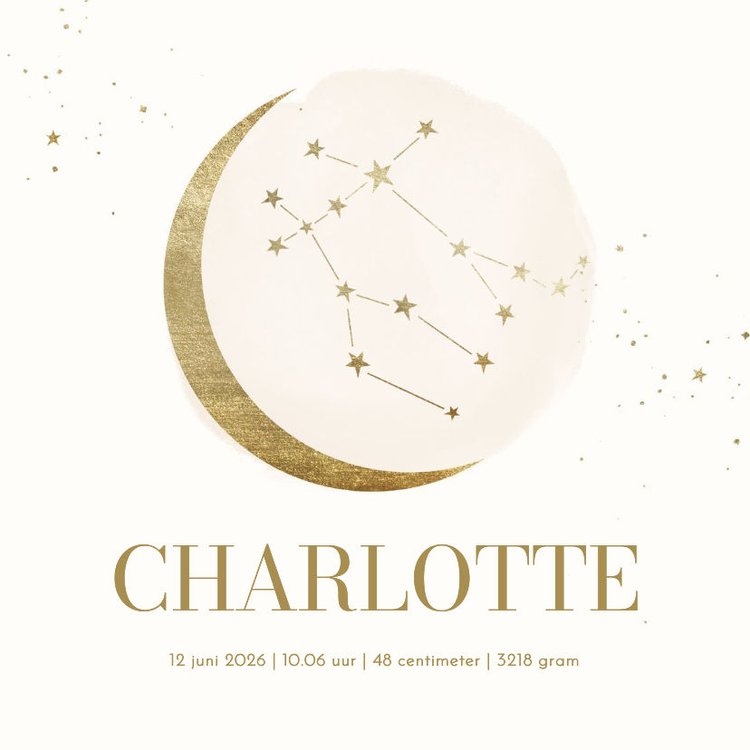 Stijlvolle poster voor een baby, met het sterrenbeeld Tweeling op een beige achtergrond, met maan.