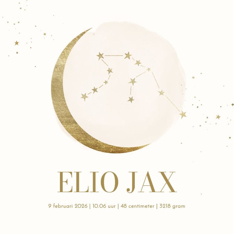 Stijlvolle poster voor een baby, met het sterrenbeeld Waterman op een blauwe achtergrond, met maan.
