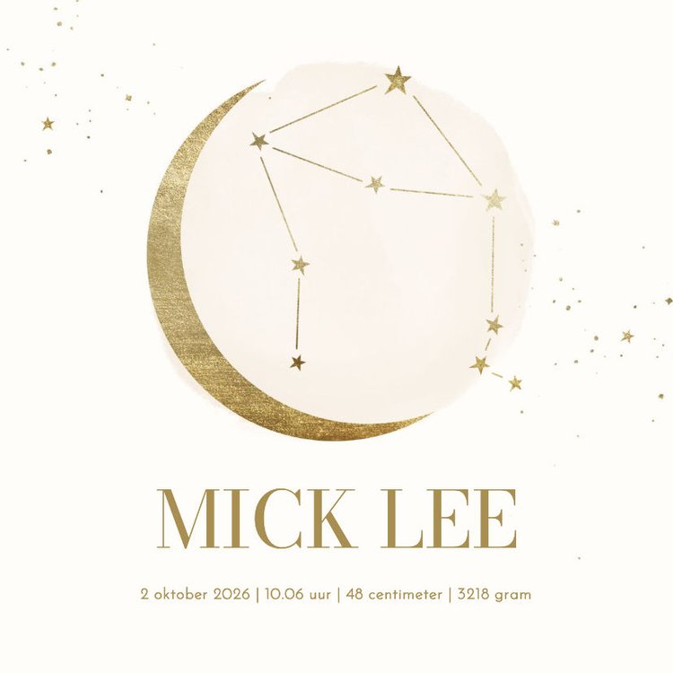 Stijlvolle poster voor een baby, met het sterrenbeeld Weegschaal op een beige achtergrond, met maan.