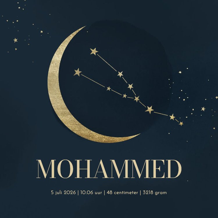 Stijlvolle poster voor een baby, met het sterrenbeeld Kreeft op een blauwe achtergrond, met maan.