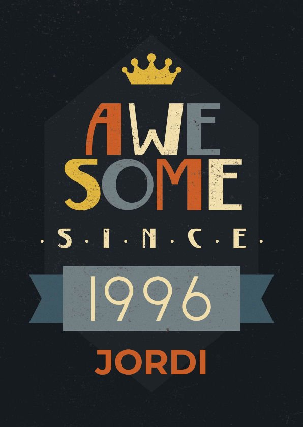 Leuke retro stijl poster met de tekst 'awesome since' met een aanpasbaar jaartal en naam!