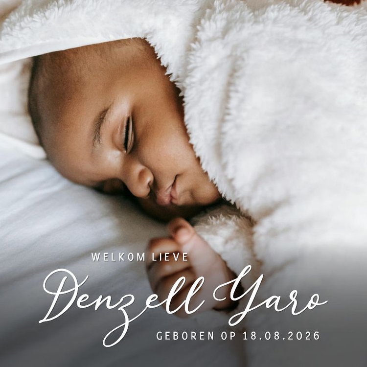 Vierkante poster met eigen foto voor bij de geboorte van een jongen of meisje, of als herinnering.