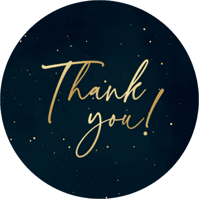 Donkere sluitzegel met gouden Thank you en sterren