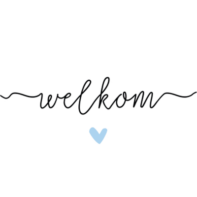 Witte sluitzegel met de tekst welkom en een blauw hartje