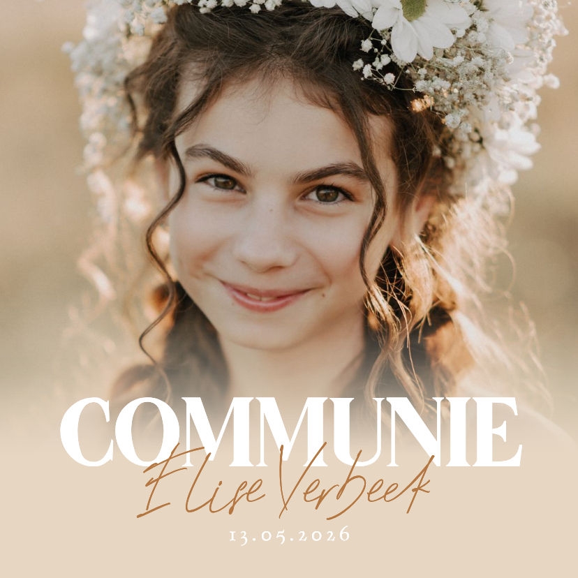 Vierkant tegeltje met een grote foto met verloopje naar beige. Met naam en datum.