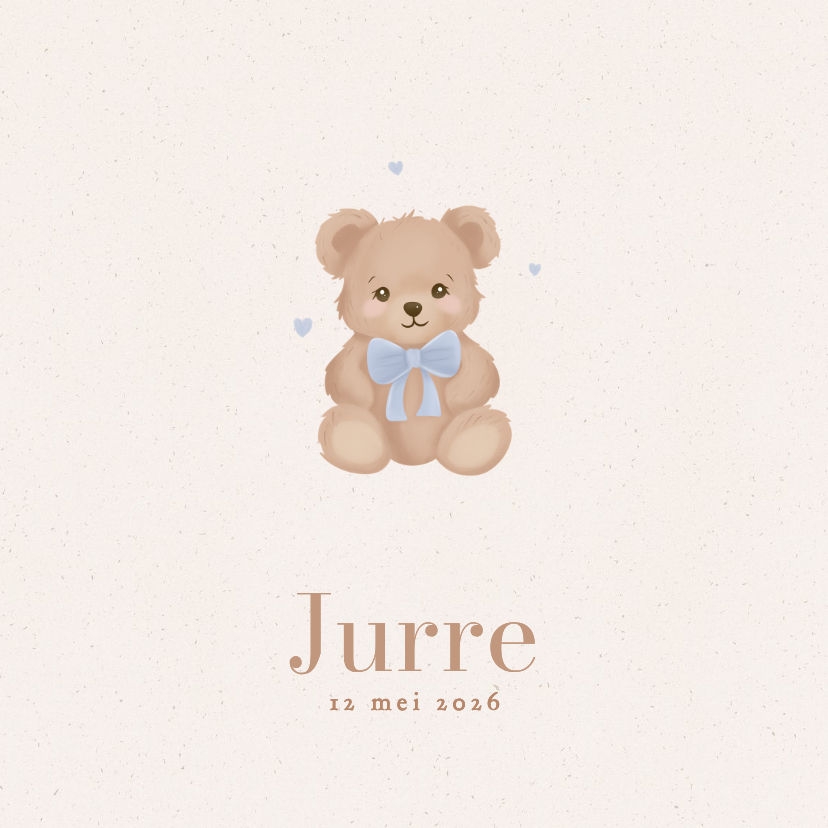 Schattig tegeltje voor de geboorte van een jongen. Met een teddybeer met strikje.