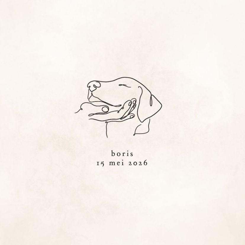 Een mooi herinneringstegeltje voor een hond met lijntekening, naam en datum.
