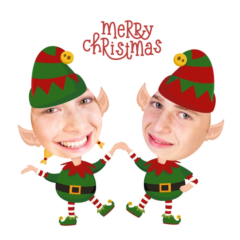 Tover jezelf en je partner om in een kerstelf op dit tegeltje met eigen foto's.