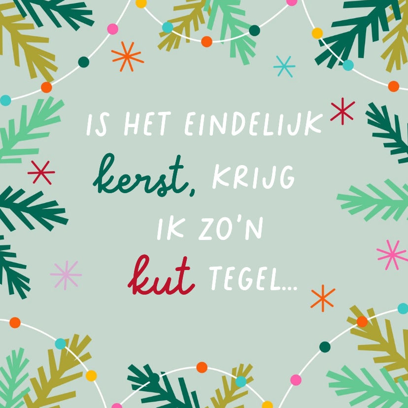 Grappige tegel kerst met takjes en typografie