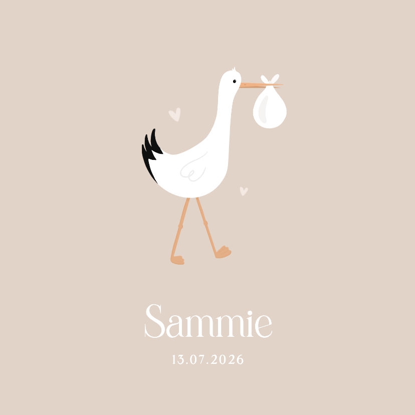 Leuk hip tegeltje met een illustratie van een ooievaar. De achtergrondkleur is aanpasbaar.