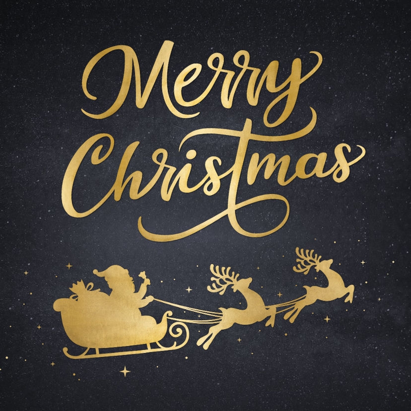 Zwart kerst tegeltje met goudlook illustratie van een kerstman silhouet in een arrenslee.
