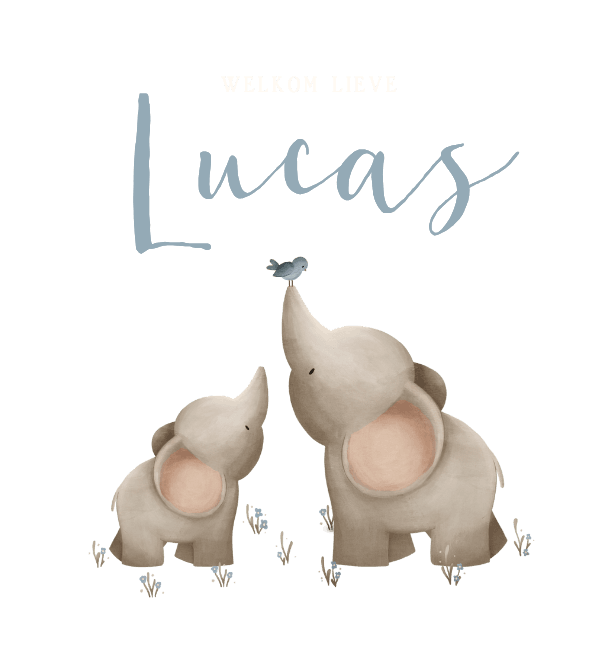 Kinderkamer lampje met illustratie van 2 olifantjes en naam. Een broertje en grote broer of zus.