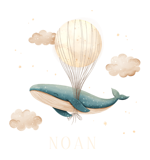 Stijlvol en lief booglampje voor de kinderkamer met een illustratie van een walvis aan een ballon.
