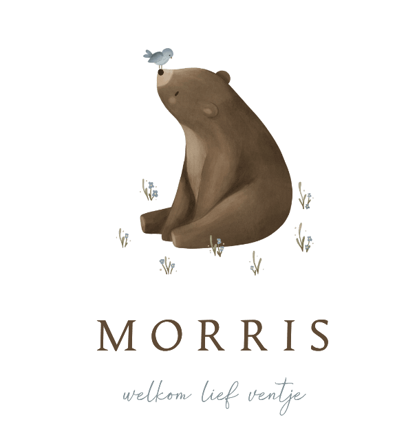 Kinderkamer lampje met eigen naam en een waterverf illustratie van een beertje en een vogeltje.