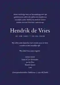 Een bidprentje is een klein, gedrukt kaartje dat wordt uitgedeeld tijdens een begrafenis of herdenkingsdienst. Op dit kaartje staat informatie over de overledene, meestal aangevuld met een (korte) tekst en een foto. Een bidprentje - ook wel bekend als ‘gedachtenisprentje’ of ‘doodsprentje’ - dient als aandenken aan de overledene en helpt de herinnering aan deze persoon levend te houden.