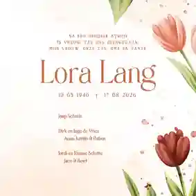 Helemaal zelf een rouwkaart met bloemen ontwerpen is best een opgave. Daarom hebben onze ontwerpers bloemen rouwkaarten gemaakt die je gemakkelijk aanpast. Zo is het mogelijk om foto’s toe te voegen, elementen te verplaatsen (of verwijderen) en kleuren aan te passen. Ook het lettertype kan naar wens gewijzigd worden. Loop je tijdens het bewerken van de bloemen rouwkaart ergens tegenaan? Neem dan gerust contact met ons op. Ons team helpt je graag verder.