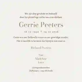 Een stijlvolle herinneringskaart met foto en geïllustreerde gedroogde takjes. Met mooie bijpassende binnenzijde waar ruimte is voor je eigen tekst.