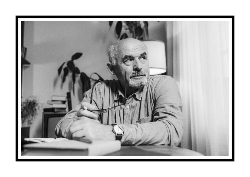 Klassieke liggende rouwkaart met zwart rouwrandje en foto