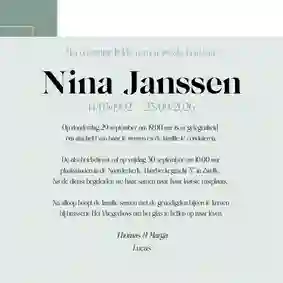 ✓ Echte ‘vereisten’ zijn er niet voor foto’s die op een rouwkaart moeten komen, al kiezen de meeste nabestaanden voor een portretfoto waarop de overledene lachend voor zich uit of in de camera kijkt.