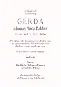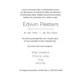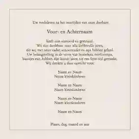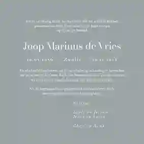 Een rouwkaart met een koolmees, uil, duif of een andere vogelsoort maken en versturen? In onze collectie bevinden zich tientallen ontwerpen met afbeeldingen van vogels. Open het ontwerp dat je het meest aanspreekt in onze kaartmaker en pas de teksten, afbeeldingen en andere elementen naar je eigen wensen aan.