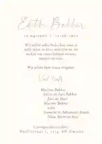 Een rouwkaart is een respectvolle en duidelijke manier om het overlijden van een dierbare aan te kondigen. Daarnaast is het vaak een uitnodiging voor de uitvaart, een eerbetoon aan de overledene en een blijvende herinnering voor de ontvanger.