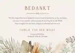 Een rouwkaart is de kaart waarmee je anderen informeert over het overlijden van een dierbare. Je vermeldt wie er is overleden, wanneer en waar het afscheid plaatsvindt, en vaak ook wie de nabestaanden zijn. Een rouwkaart is dus niet alleen een bericht van overlijden, maar vaak ook een uitnodiging voor de uitvaart.