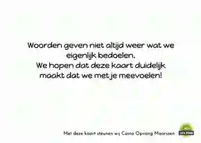 Cavia Opvang Maarssen vangt meer dan 1000 cavia’s per jaar op. Cavia’s zijn groepsdieren en kunnen niet alleen blijven. Ons doel is om voor al deze opvang kanjers een fijn en blijvend thuis te vinden. Wij kunnen dit niet zonder uw hulp! De kosten voor voer, bodembedekking en vooral de dierenartskosten zijn op deze aantallen enorm. Voor iedere verstuurde kaart uit onze collectie, doneert Kaartje2go aan de opvang. Helpt u mee om deze kanjers een tweede kans te geven? Een warme groet uit de opvang!