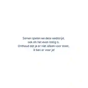 “Gemiddeld 2 op de 11 jongeren speelt elke dag een zware wedstrijd.” Niet op het veld, maar in hun hoofd. Uitspreken wat je voelt, is niet altijd makkelijk. Dat kan flink eenzaam voelen. Terwijl een klein beetje support al een groot verschil kan maken. Zilveren Kruis en de KNVB slaan de handen ineen. Met de campagne De Onzichtbare Blessure maken we mentale gezondheid bespreekbaar. We willen dat mentale gezondheid net zo normaal wordt als een knieblessure. Met een kaartje geef je iemand die niet lekker in z'n vel zit een beetje support.