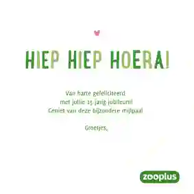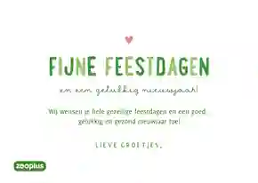 Dierenwinkel zooplus is dé online dierenwinkel van Nederland en België. Heb je een hond, kat, vogel, vis , paard of knaagdier? Bij zooplus vind je hoogwaardig voer en een breed assortiment aan accessoires voor ieder huisdier. Wij weten dat een huisdier meer is dan een dier, hij of zij is een volwaardig gezinslid. En dat verdient het ook om een verjaardags- of beterschapskaart te krijgen. Of je zet je maatje graag op de foto voor je kerstkaart. Daarom zijn zooplus en Kaartje2go een unieke samenwerking aangegaan en hebben we een mooie collectie wenskaarten ontwikkeld voor verschillende gelegenheden.