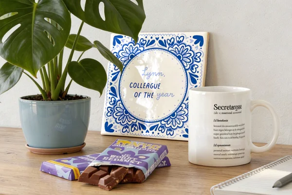 Secretaressedag valt elk jaar op de derde donderdag van april, en wordt ook steeds vaker de Dag van de Medewerker genoemd. Het is hét moment om te laten weten hoe blij je bent met je secretaresse, officemanager, management assistent en andere ondersteunende collega’s. Deze onmisbare krachten zorgen er namelijk elke dag weer voor dat alles op rolletjes loopt. En dat vraagt om een mooi cadeau en een kaart voor Secretaressedag. Ga bijvoorbeeld voor een gepersonaliseerd presentje, zoals een mok, reep chocolade of tegeltje. Of verras die kantoortopper met een prachtige bos bloemen of een plantje. En met een kaartje en een lieve tekst zorg je ervoor dat hij of zij zich echt gezien voelt.