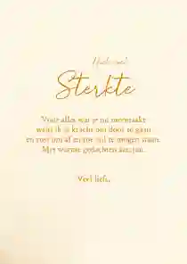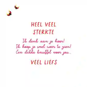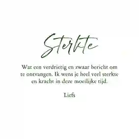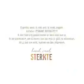 Voor iemand die een zware tijd heeft, kan het een mooi gebaar zijn als er een troostend kaartje op de deurmat valt. Een sterkte kaart met bloemen is dan een liefdevolle manier om je medeleven te tonen. We hebben verschillende soorten bloemen sterkte kaarten. Van vrolijk tot sereen en van kleurrijk tot rustig. Wie steek jij een hart onder de riem?
