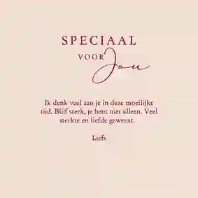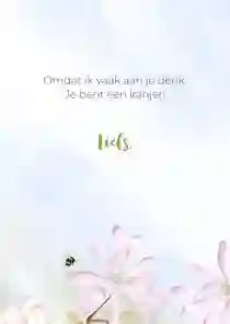Bloemen hebben verschillende betekenissen. Zo staat de klaproos voor troost, de magnolia voor trouw en liefde, en de lavendel voor puurheid en bewondering. Zo kun je iemand op een liefdevolle manier troosten. Maar het is natuurlijk ook fijn om voor de lievelingsbloemen van de ontvanger te kiezen. Zo geef je je sterkte kaart met bloemen een persoonlijk tintje.