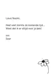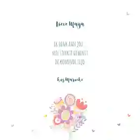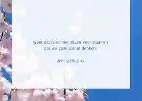 Bloemen hebben verschillende betekenissen. Zo staat de klaproos voor troost, de magnolia voor trouw en liefde, en de lavendel voor puurheid en bewondering. Zo kun je iemand op een liefdevolle manier troosten. Maar het is natuurlijk ook fijn om voor de lievelingsbloemen van de ontvanger te kiezen. Zo geef je je sterkte kaart met bloemen een persoonlijk tintje.